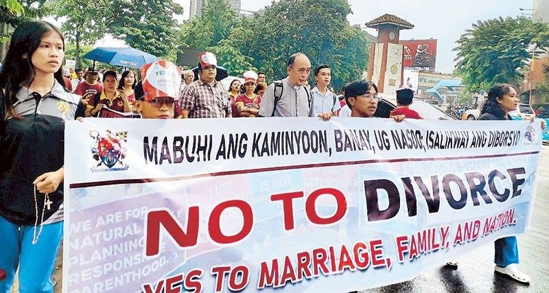 许多民间组织多年来努力不懈推动「合法」离婚,於2024年5月菲律宾众议院批准了《离婚法案(Absolute Divorce Bill)》,使有限范围内的离婚合法化。然而,众议院的通过并不能保证该法案可以顺利通过参议院; 2018年,同样是离婚议题的法案在众议院获得通过,但在参议院夭折。最主要的原因是天主教会的强大影响力,教会反对任何自由化,也反对堕胎和避孕药品器具的合法化。